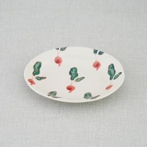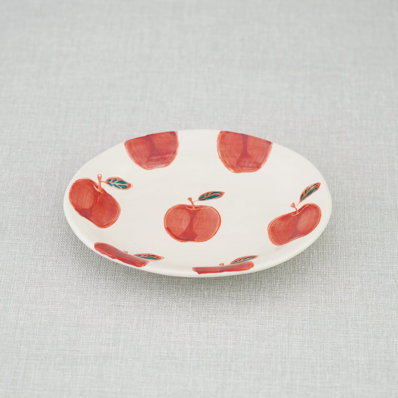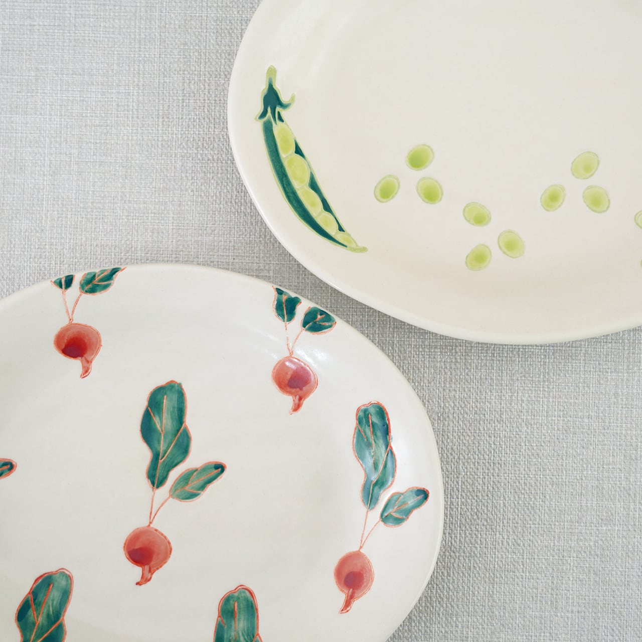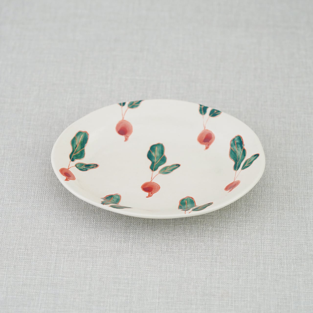 アイボリーのようなやわらかな生地に、愛らしいくだものや野菜のモチーフを描いたフレッシュアートシリーズ。