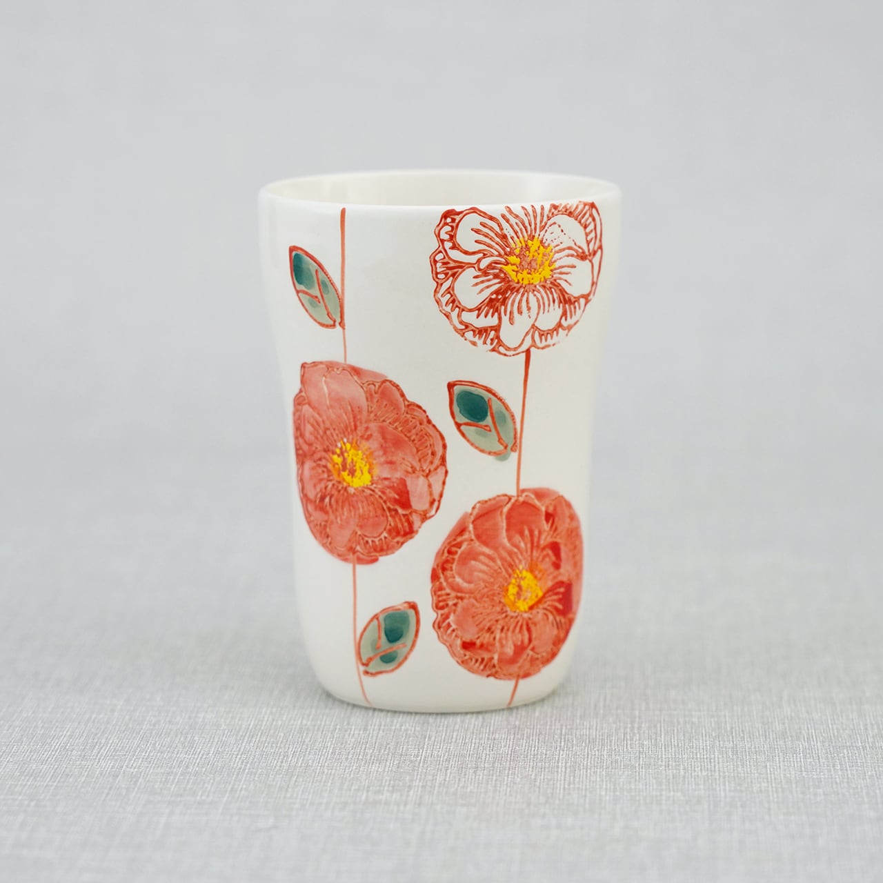 大胆に描かれたお花柄のかわいいコップ。